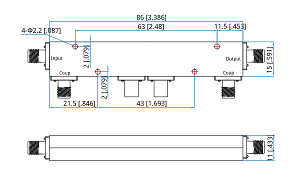 2000-4000MHz 2-4GHz 10dB 10W BI-Directional Coupler